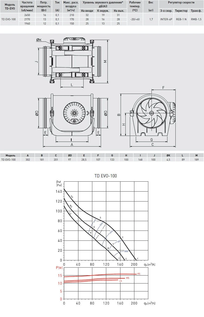 Канальный вентилятор Soler & Palau TD EVO-100