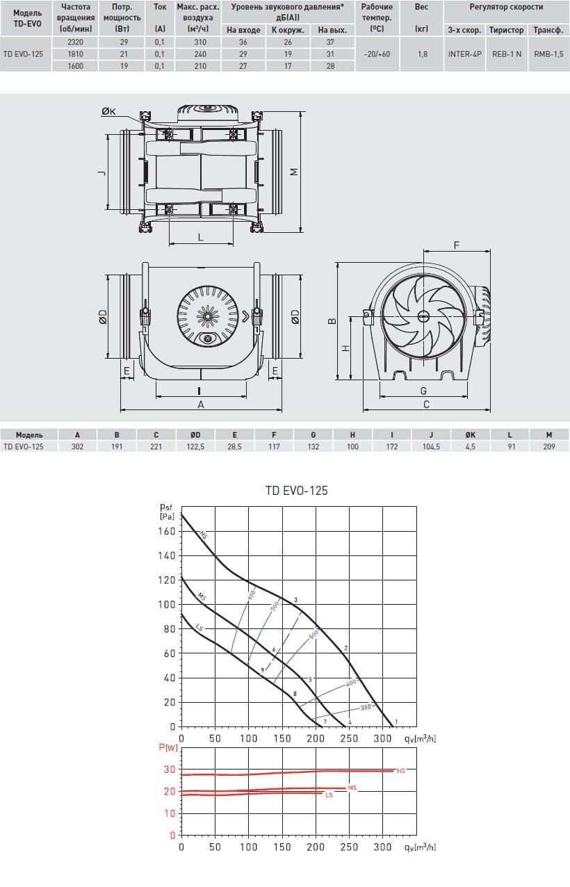 Диаметр воздуховода, мм125
