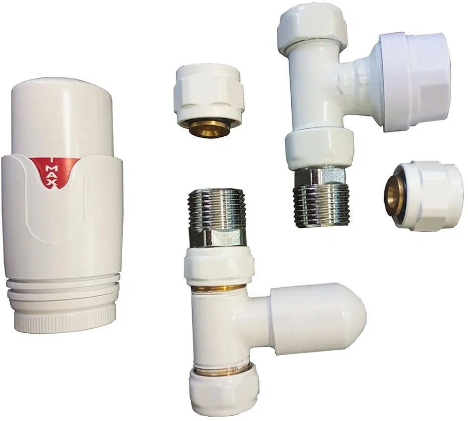 Комплект радиаторный Delta mini прямой 1/2 с термоголовкой М30х1,5 RAL 9016