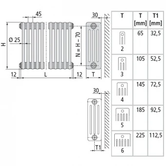 Стальной трубчатый радиатор 2-колончатый Arbonia 2050/24 N69 твв RAL 9016