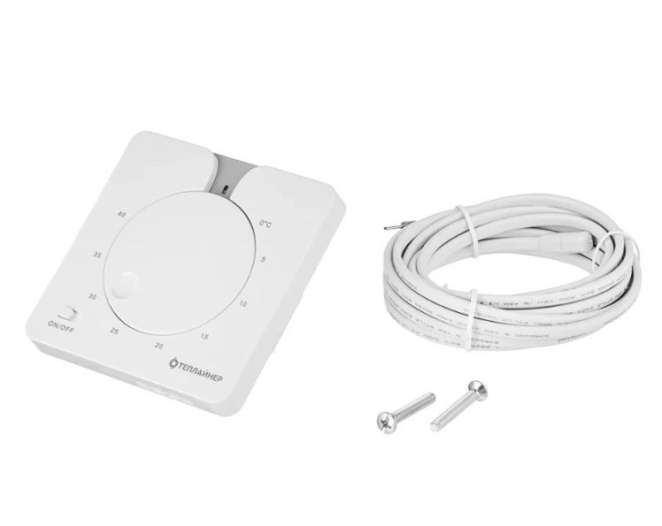 КомплектацияТерморегулятор — 1 шт. <br />Датчик температуры пола — 1шт. (в модели без встроенного датчика) <br />Крепежные винты — 2 шт. <br />Инструкция пользователя — 1шт.