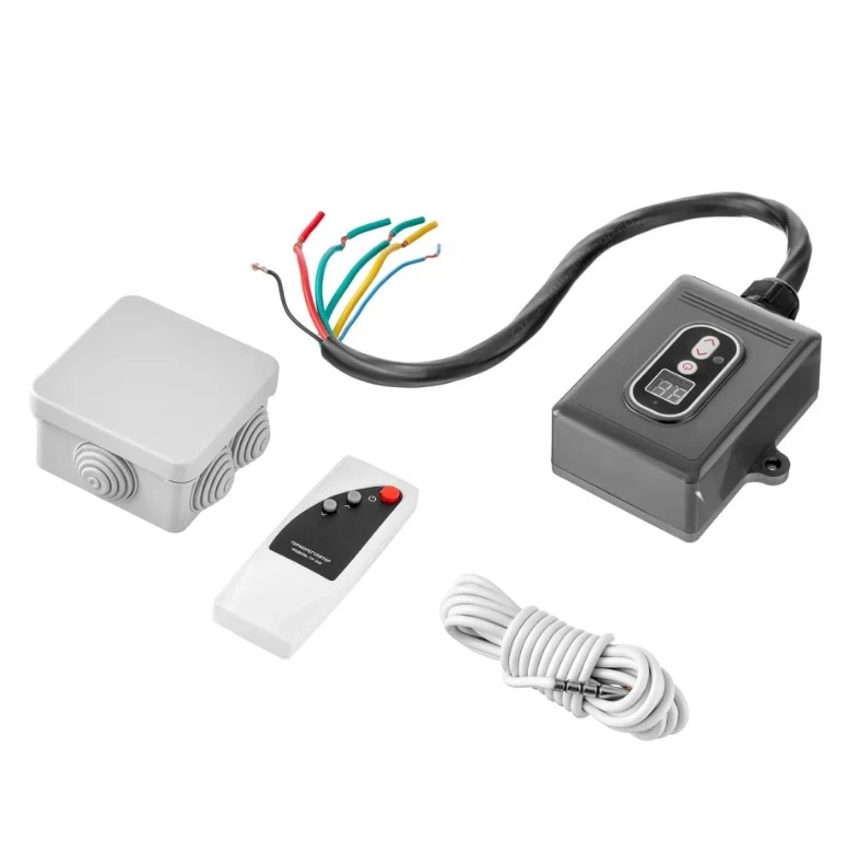 КомплектацияТерморегулятор — 1 шт. <br />Пульт управления - 1 шт. <br />Датчик температуры длиной 2.5м — 1шт. <br />Монтажная коробка — 1 шт. <br />Клеммный блок — 1 шт. <br />Инструкция пользователя — 1шт.
