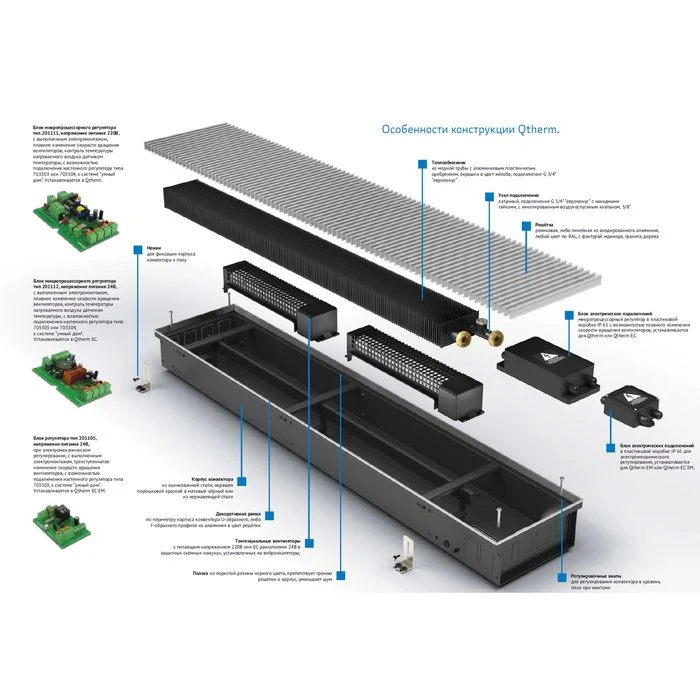 Внутрипольный конвектор длиной 30 см - 1 м Varmann Qtherm 230х75х800